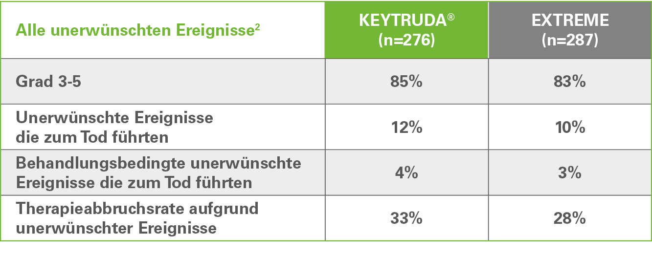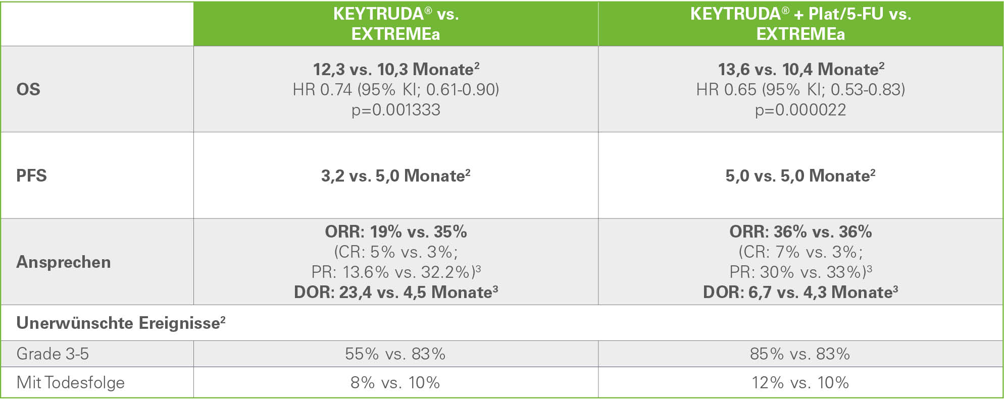 33% unter KEYTRUDA® + Plat/5-FU vs. 28% unter dem EXTREME-Regime. 2
